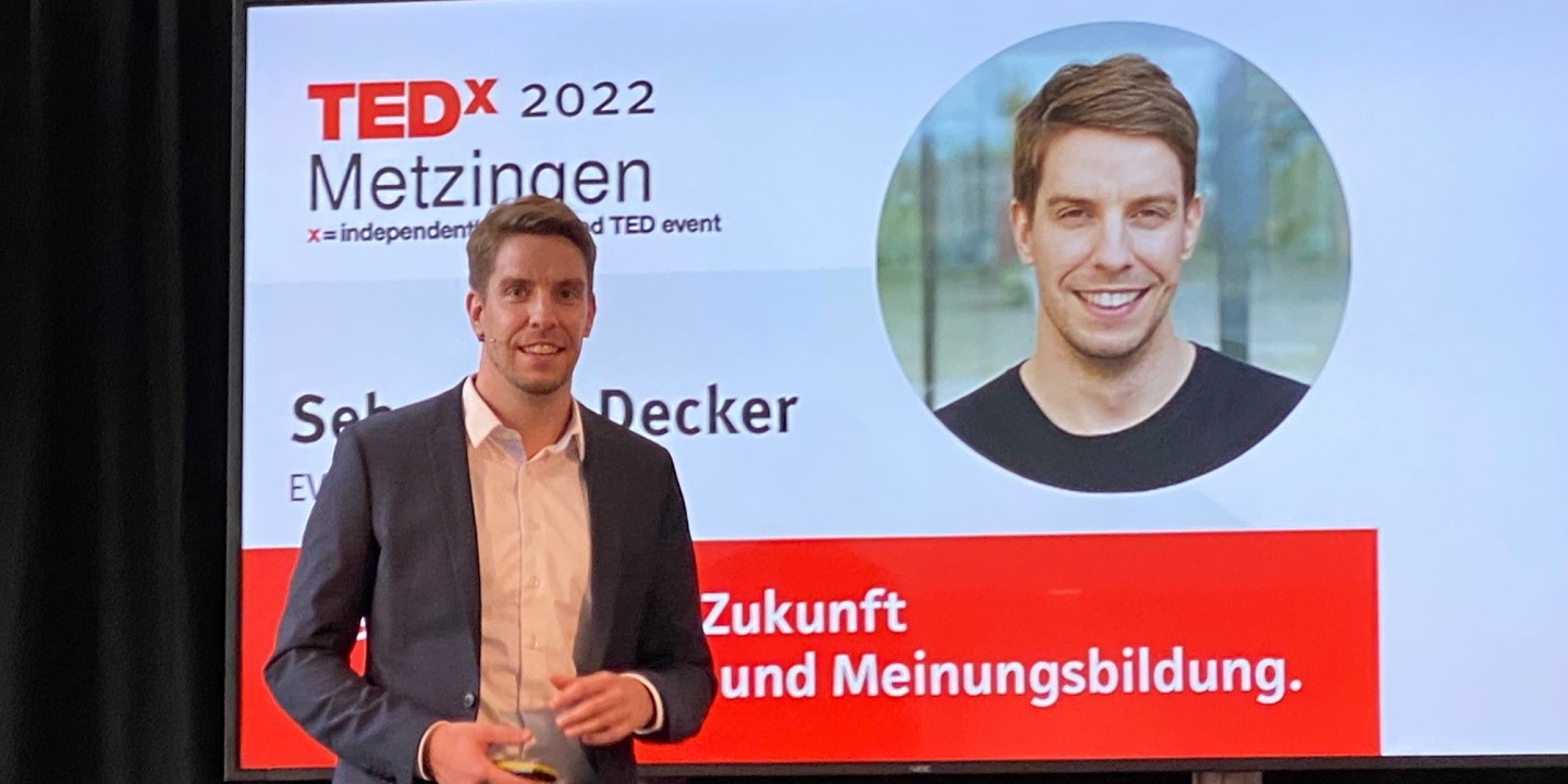 Sebastian Decker war Redner bei TEDxMetzingen am 21. Juli 2022. Sebastian Decker sprach darüber, wie uns Algorithmen beeinflussen und wie Plattformen wie Google, Meta und co. gezielt Interessensprofile aufbauen.