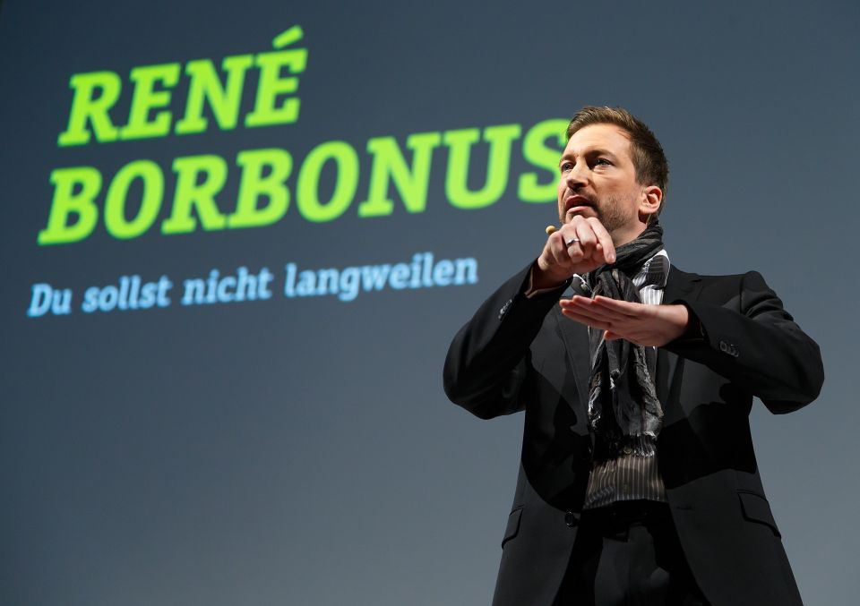 René Borbonus ist heute einer der gefragtesten Trainer und gilt als einer der besten Rhetoriker deutscher Sprache. Er begeistert sein Publikum durch die meisterhafte Verbindung von Fachwissen und Praxisnähe, Sachlichkeit und Engagement, Sprachwitz und Ausstrahlung.